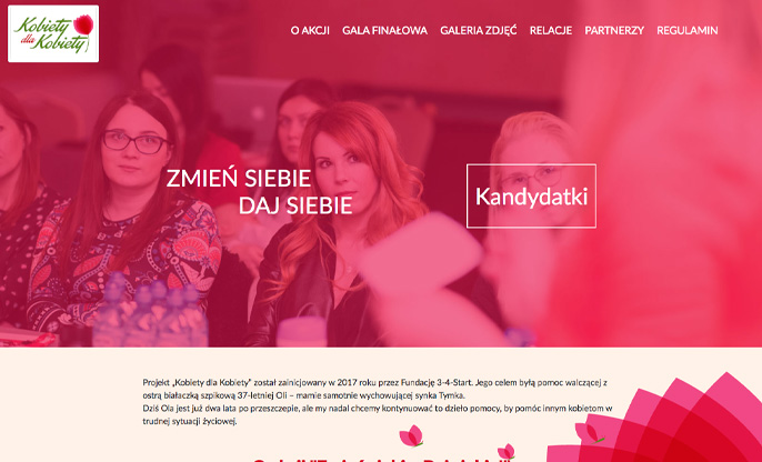 Strona internetowa oraz platforma konkursowa na potrzeby akcji 'Kobiety dla Kobiety' w ramach fundacji 3-4-Start.