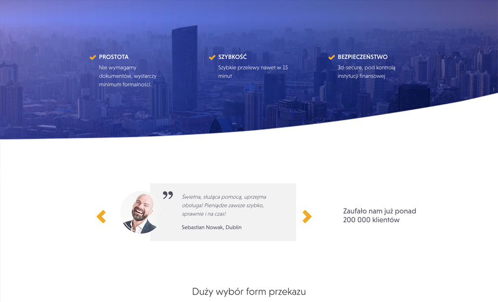 Klienci serwisu mają możliwość wygodnego przeliczenia walut oraz wybierania dostępnych sposobów przekazu, kontrolując na bieżąco koszt przekazu oraz czas jego realizacji.