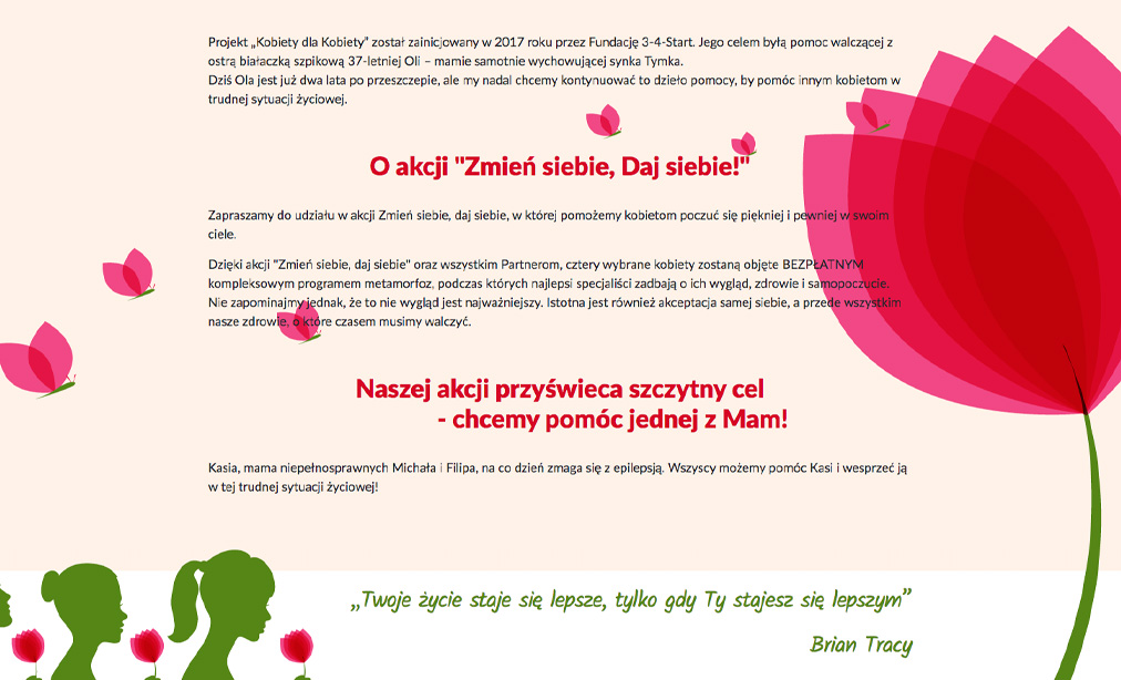 Strona internetowa oraz platforma konkursowa na potrzeby akcji 'Kobiety dla Kobiety' w ramach fundacji 3-4-Start.