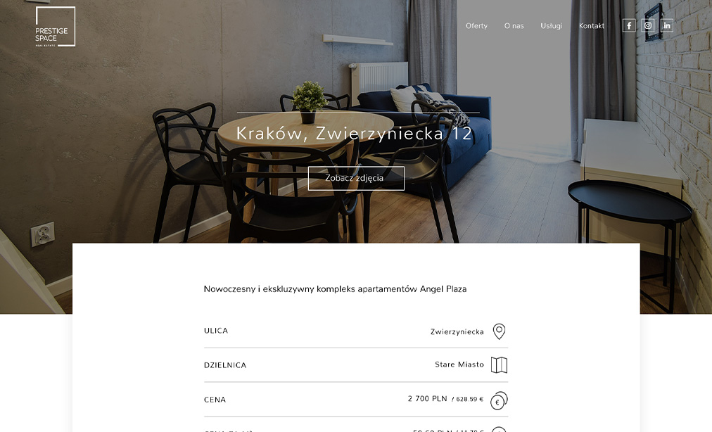 Oferta przedstawiona jest w sposób estetyczny. Do każdej oferty dodane są szczegóły dotyczące lokalizacji, ceny, powierzchni oraz inne informacje niezbędne do szczegółowej prezentacji oferty.