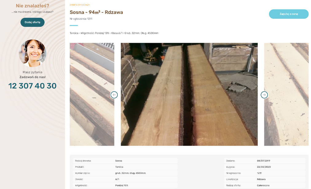 Platforma typu marketplace dla branży drzewnej w formacie B2B - łącząca producentów drewna (jak tartaki) z odbiorcami.