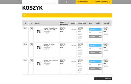 Zawiera listę wszystkich produktów możliwych do zakupu wraz z cenami i rabatami, które dotyczą konkretnego użytkownika i jego uprawnień.