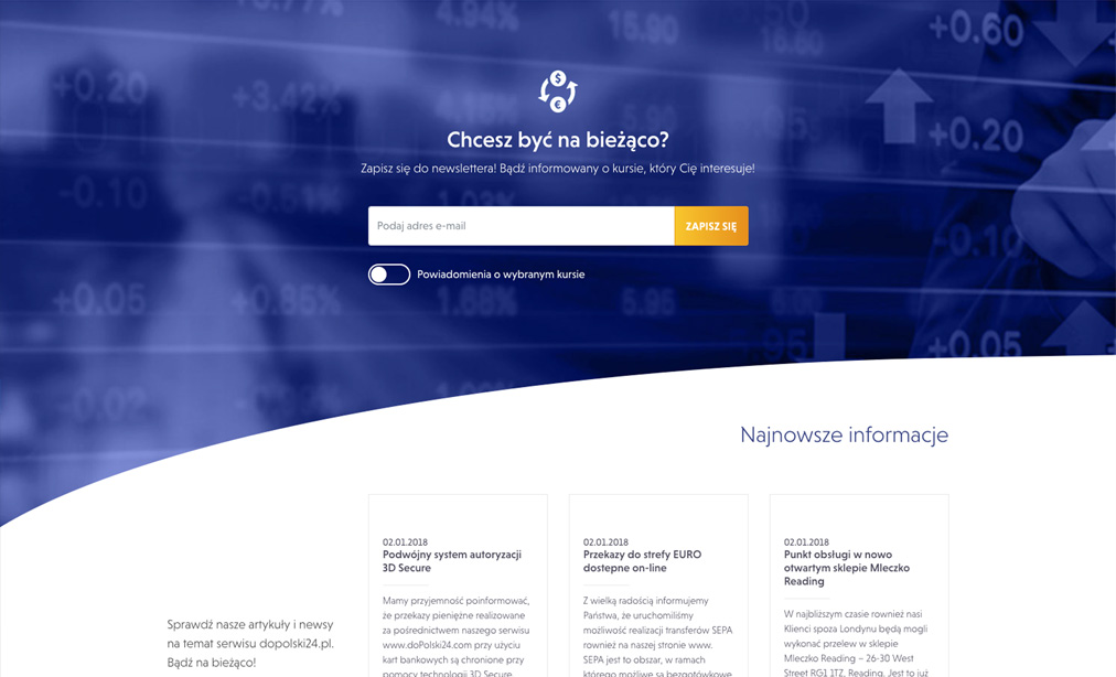 Serwis internetowy do realizacji przekazów pieniężnych z Unii Europejskiej do Polski w dogodny i przejrzysty dla użytkownika sposób.