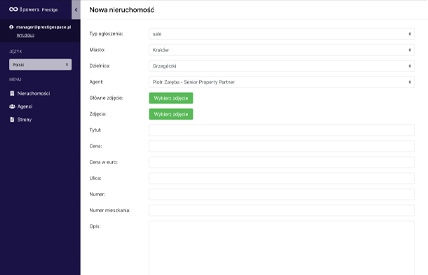Łatwe dodawanie nowych ofert zakupy i sprzedaży nieruchomości, za pomocą intuicyjnego do panelu administratora. Użytkownik sam decyduje jakie treści pojawią się w szczegółach oferty.