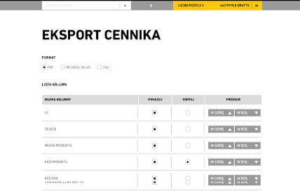 Użytkownik ma możliwość pobrania aktualnej oferty w preferowanym formacie oraz zaimportowanie go w swoim systemie sprzedażowym.