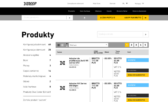 Umożliwiający zamawianie produktów gotowych oraz indywidualnie skomponowanych przez użytkownika przy pomocy konfiguratora.